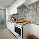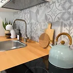 Az apartman egy felszerelt konyhasarkot kínál főzőlappal és konyhai edényekkel.